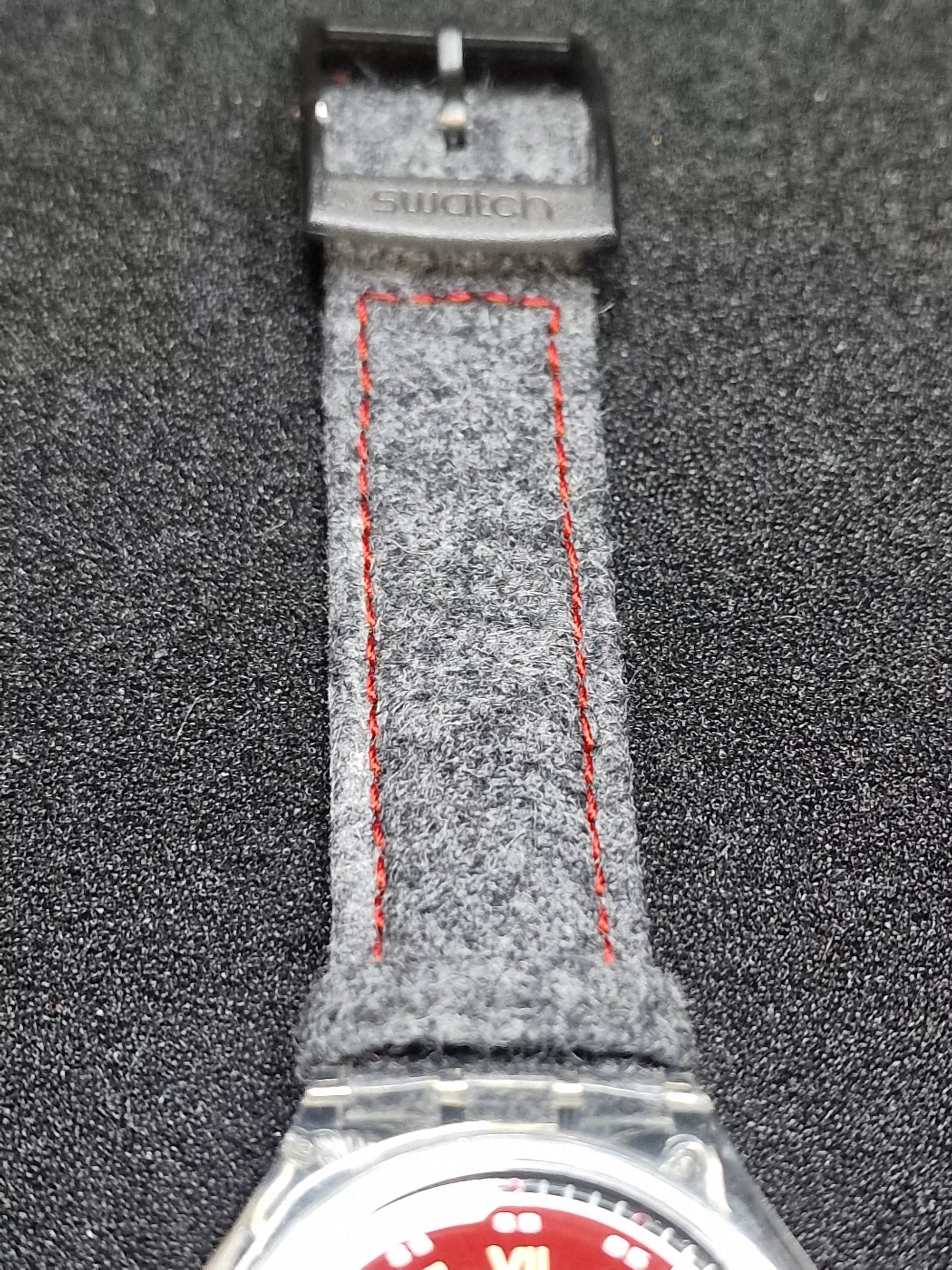 🔹 Strap: Original grey felt with red stitching