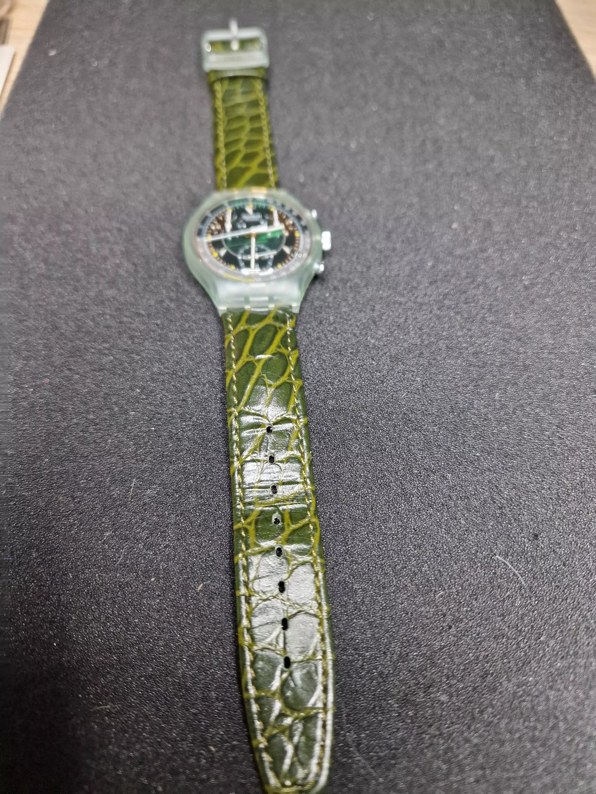 🔹 Strap: Original green leather, alligator style